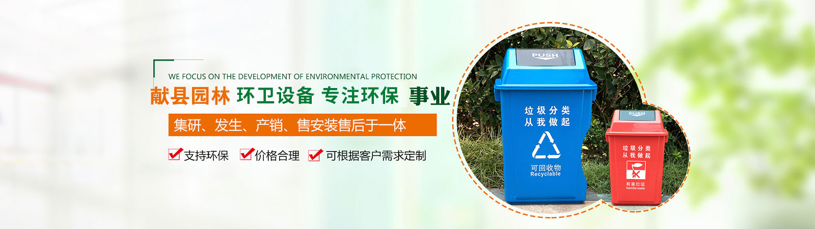 產(chǎn)品有:果皮箱、垃圾箱、花盆、護花欄、路椅、大型袋裝垃圾箱、保潔專用三輪車及環(huán)藝雕塑、健身器材及物業(yè)小區(qū)配套設(shè)施等。